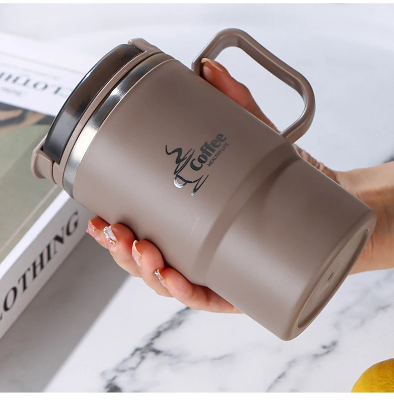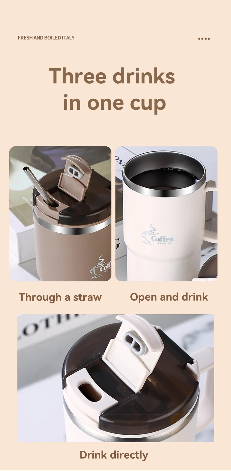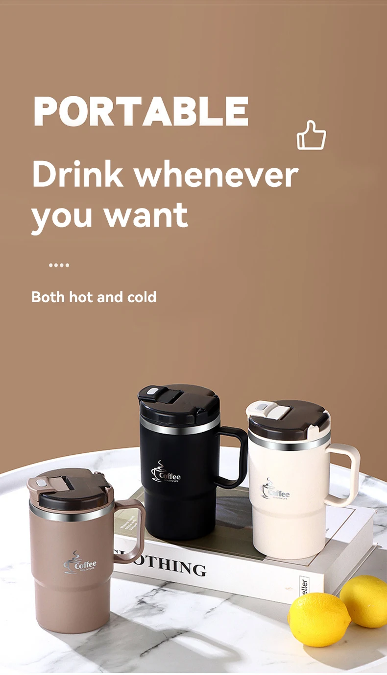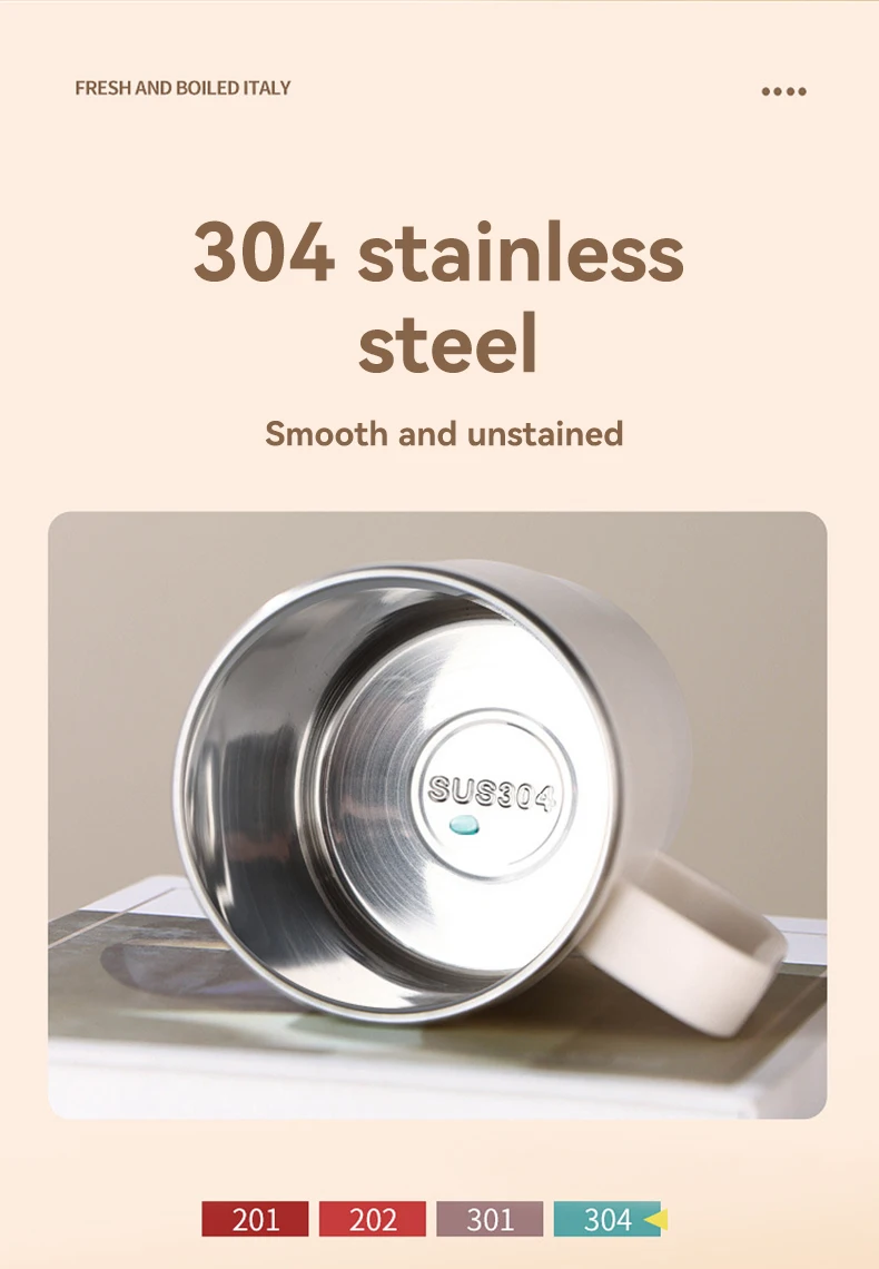 WORTHBUY Double-Wall Coffee Mug 304 Stainless Steel Water Mug Cup With Spoon&Tea Strainer Leak Proof Anti Scalding Drinking Cup